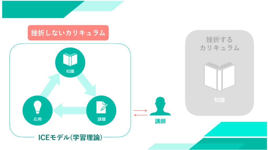 本システム「YELL」が皆様の学習カリキュラムです。 カリキュラムは「ICEモデル」という学習理論に基づき、初学者でも挫折しないように構成されています。