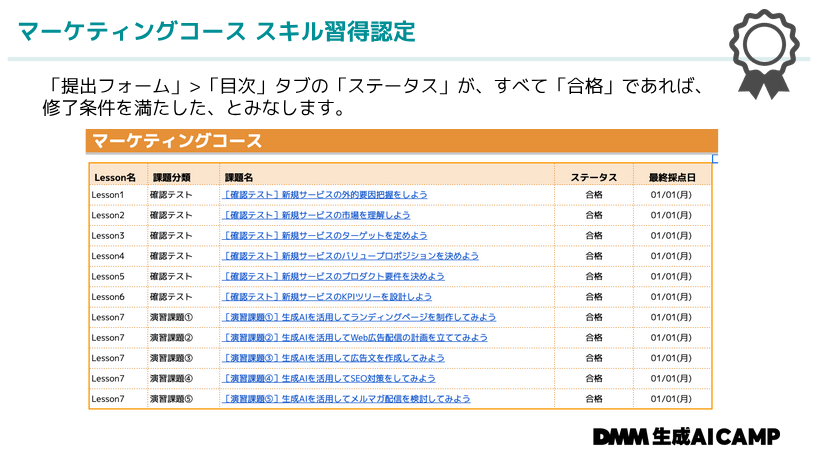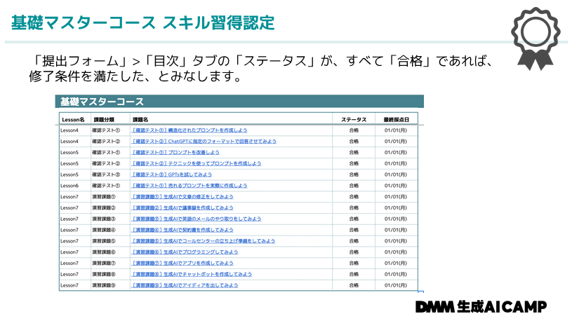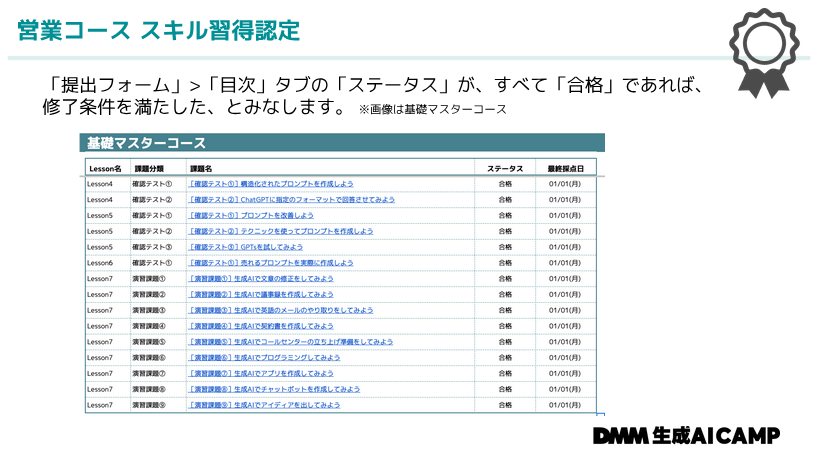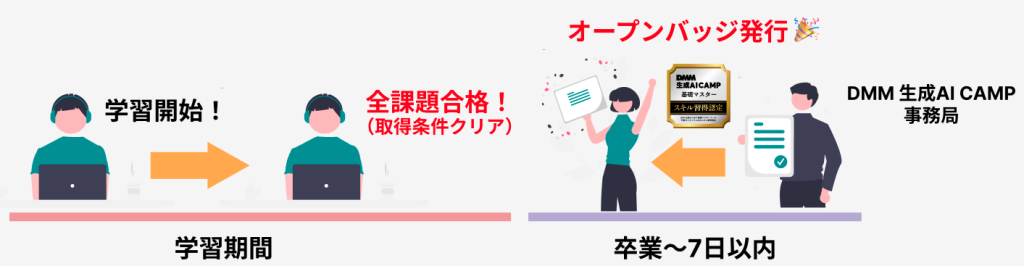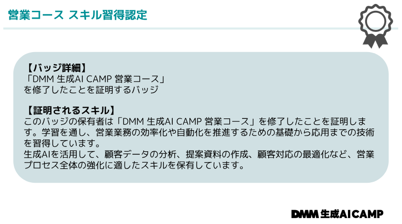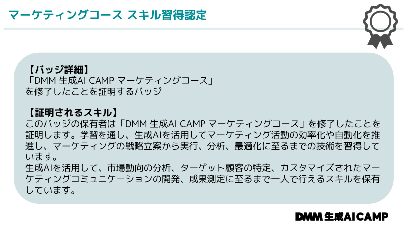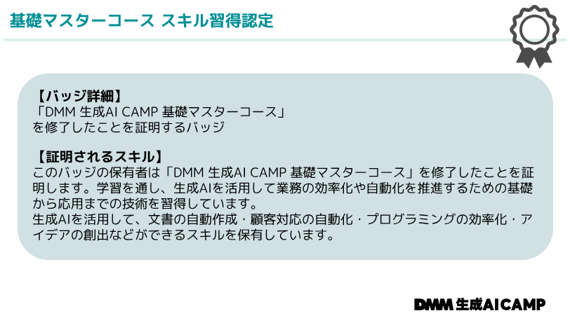- オープンバッジ発行のお知らせ(卒業後DMM 生成AI CAMP運営部より送信)